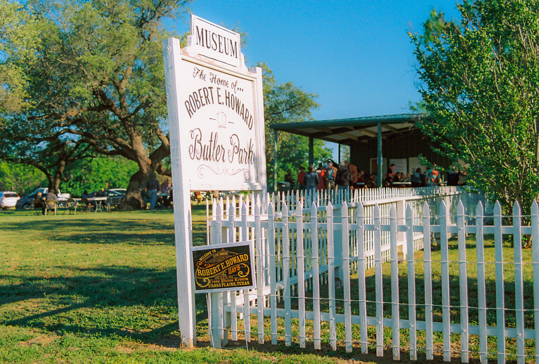 Robert E. Howard Days sign outside of the Robert E. Howard Museum in Cross Plains, TX, on April 29, 2023.