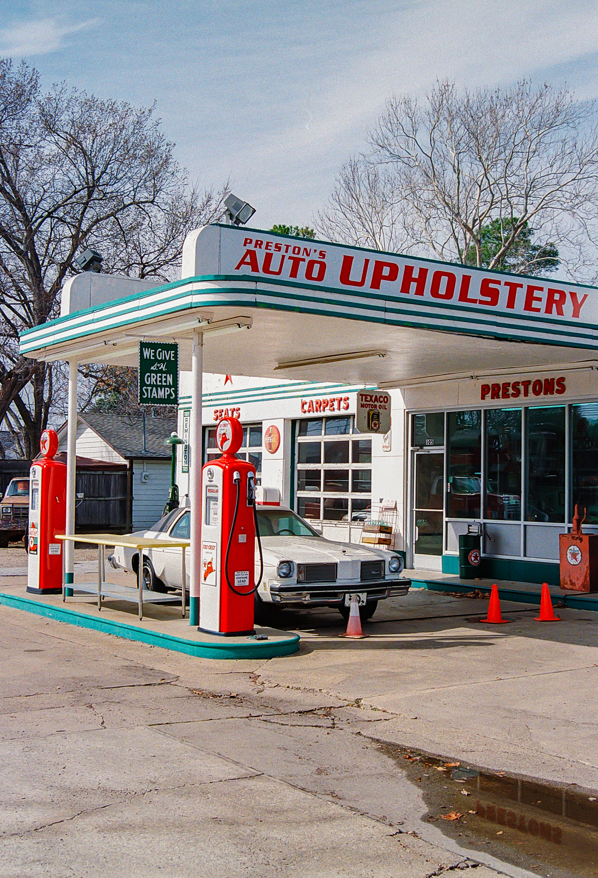 A 1975 Oldsmobile Hurst sits outside of Preston’s Auto Upholstery, located on 6th Street in Irving, TX on Feb. 13, 2025. The shop has been operating since 1977.