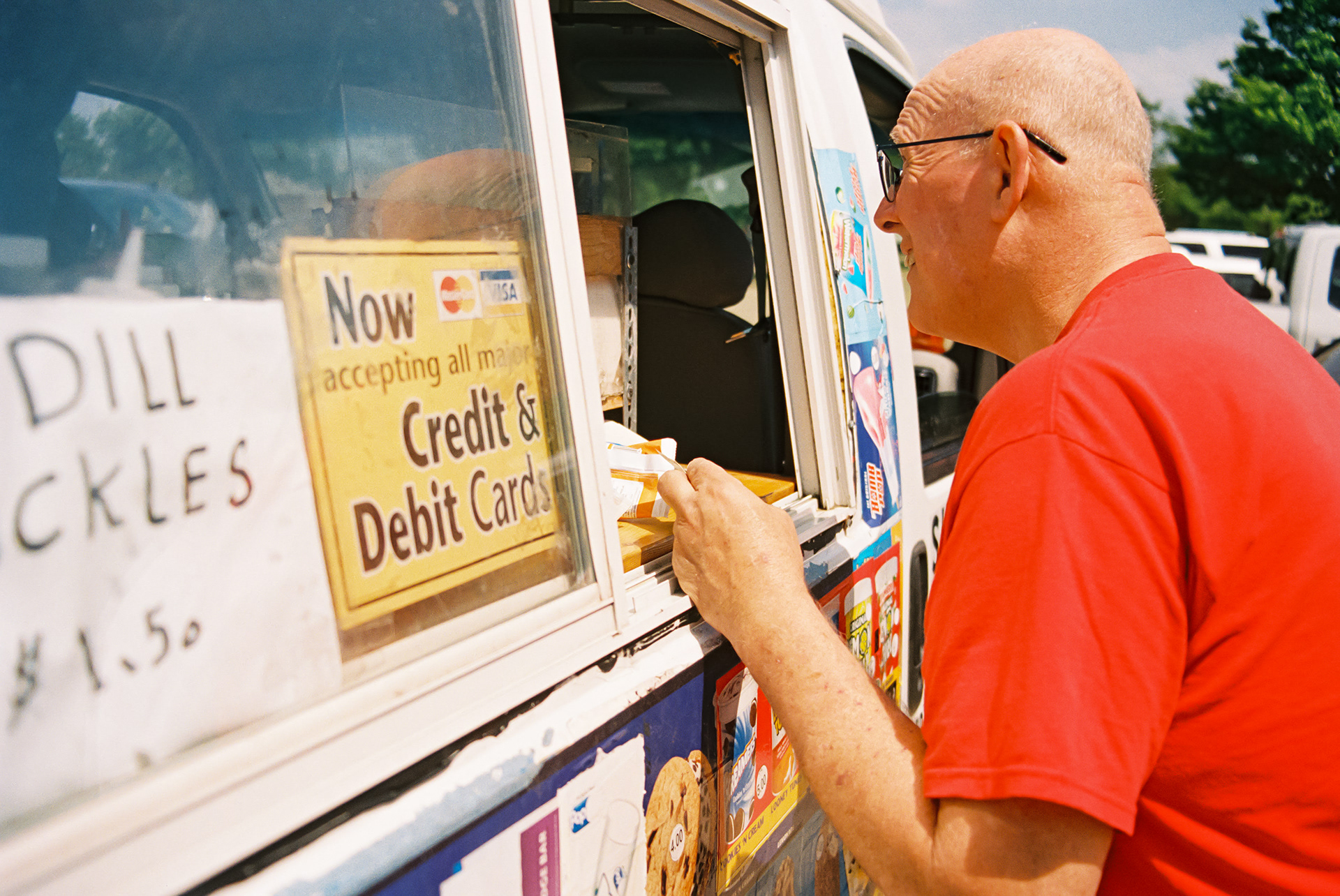 Joseph Rhea orders ice cream from an ice cream truck at Josey Ranch Athletic Complex in Carrollton, TX.