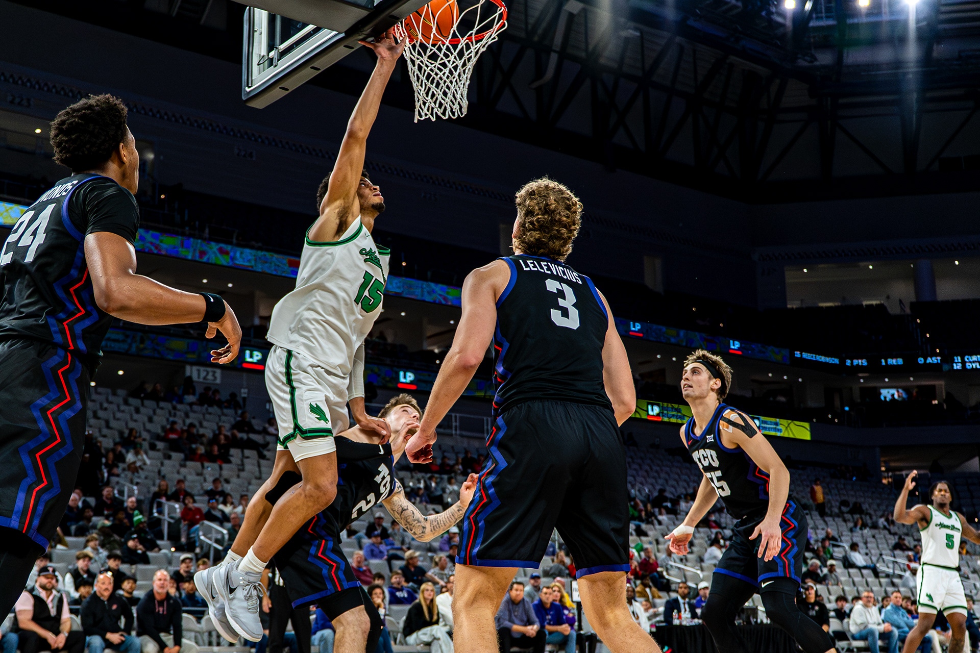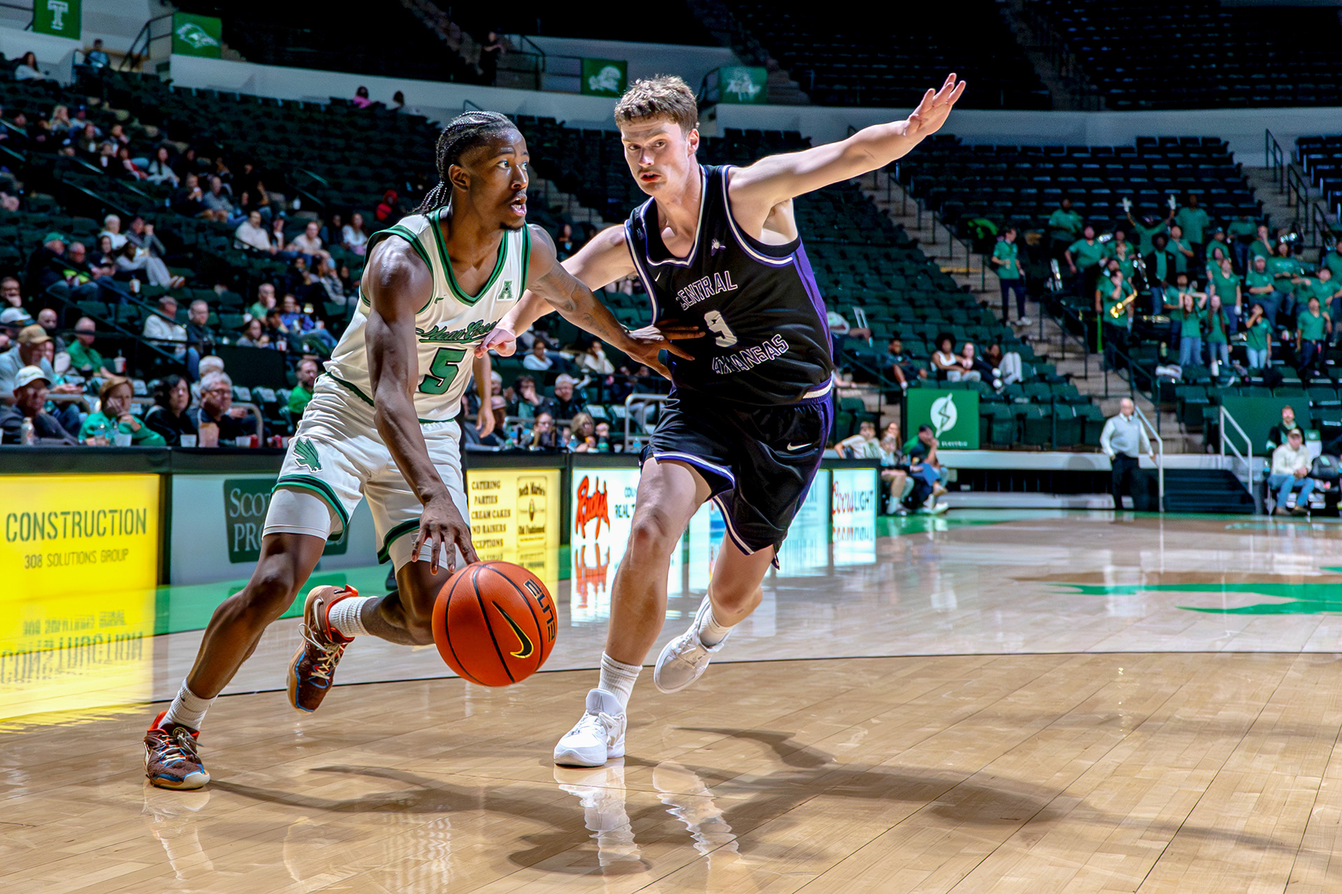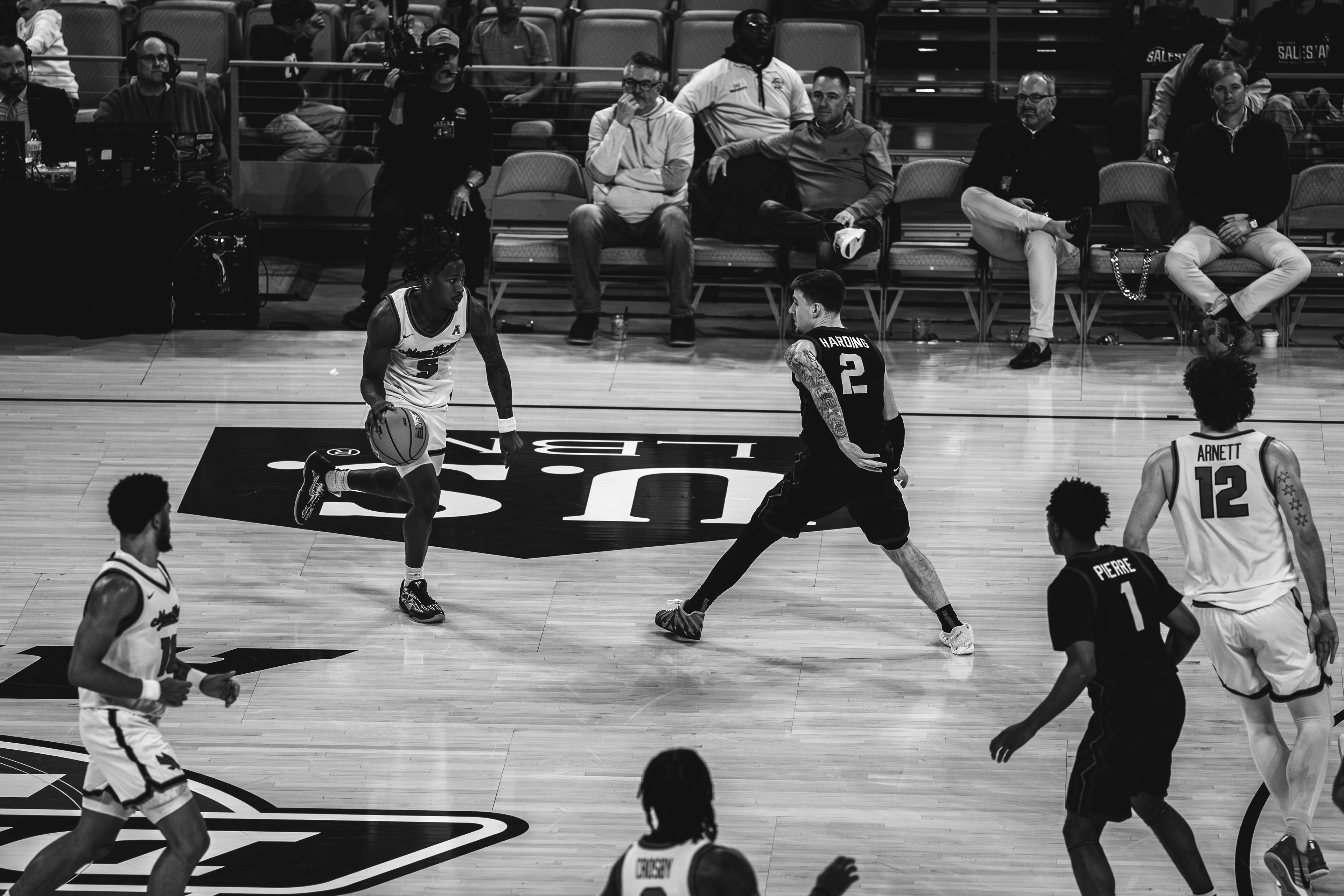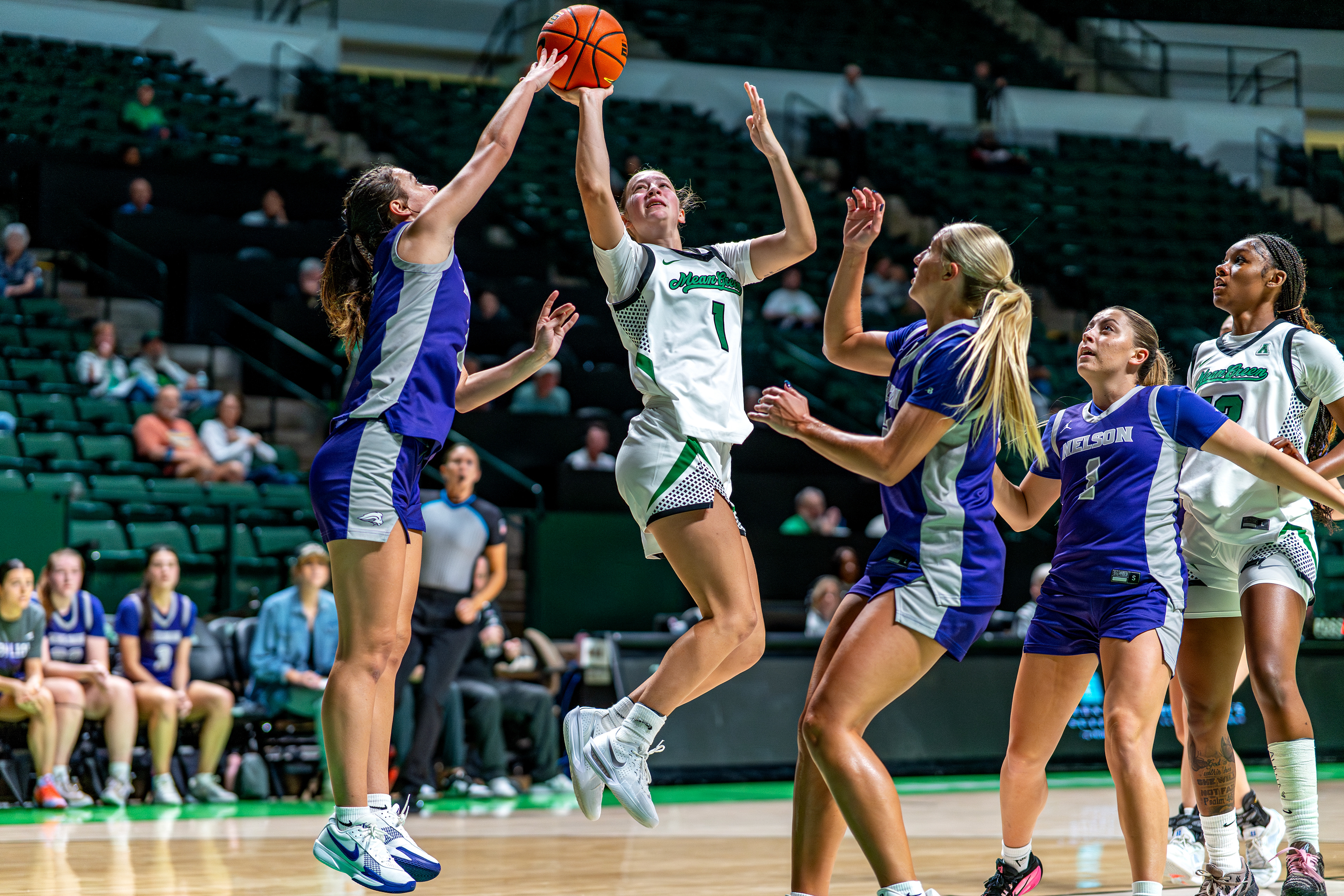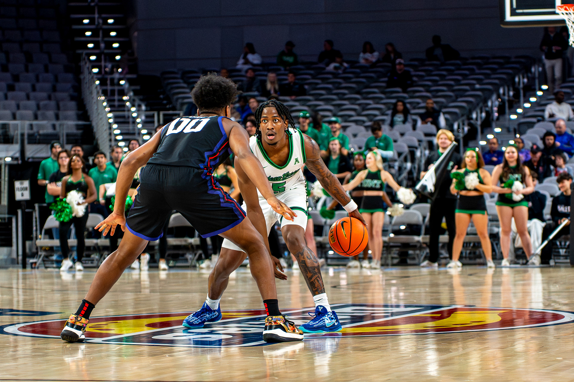 Junior guard Kyla deck dribbles towards the basket during the game against UAB at The Super Pit on March 01, 2025.