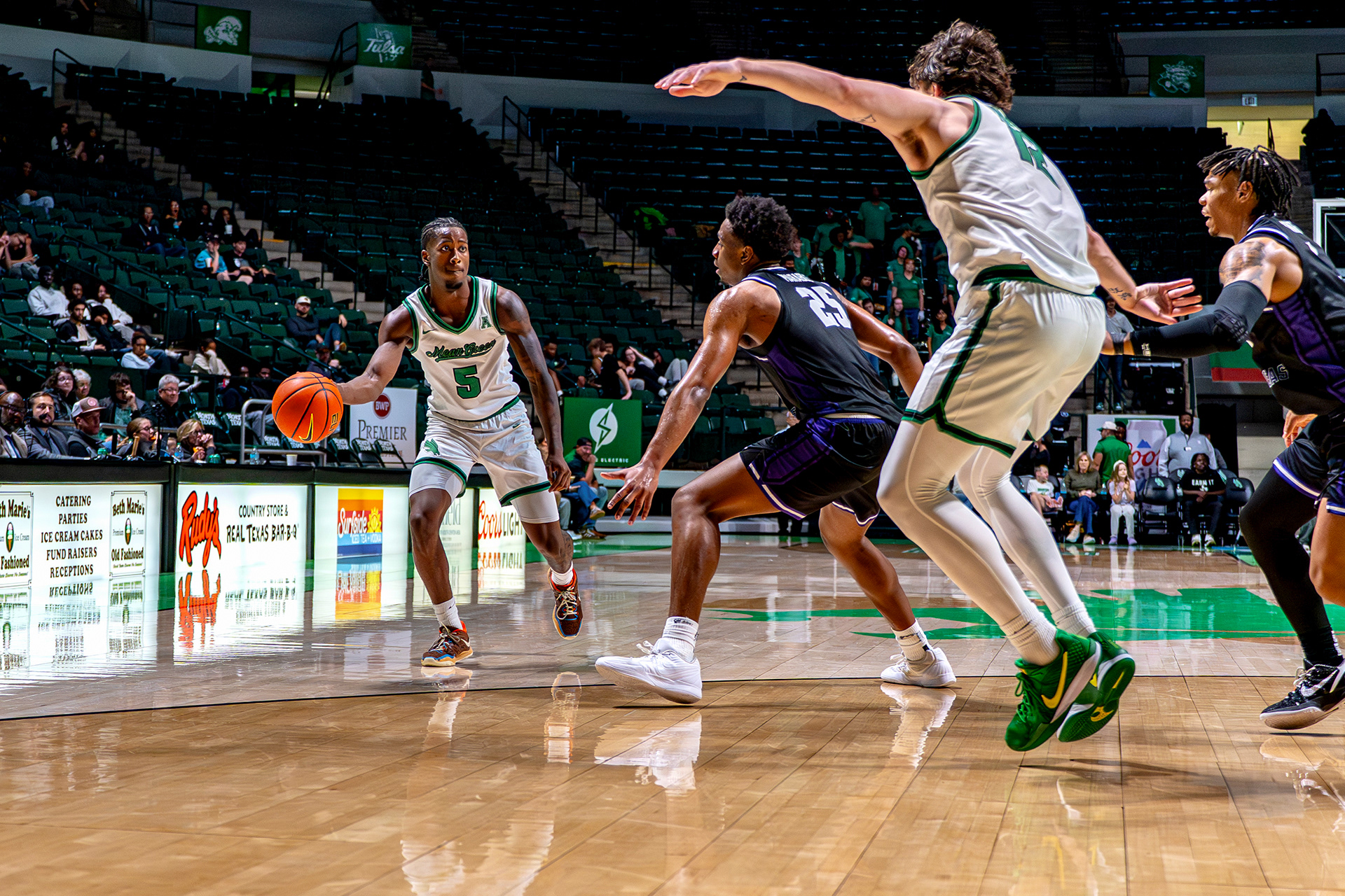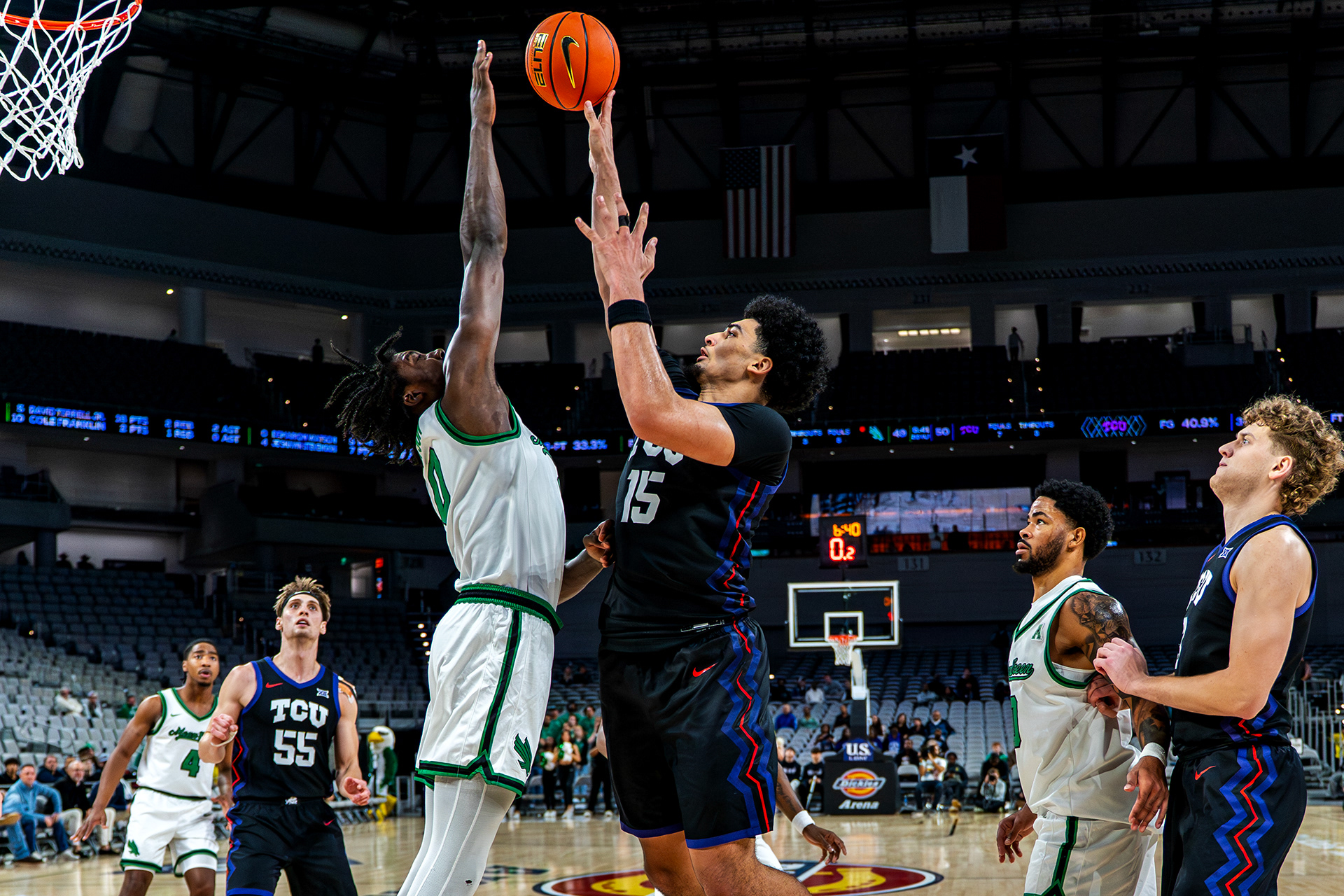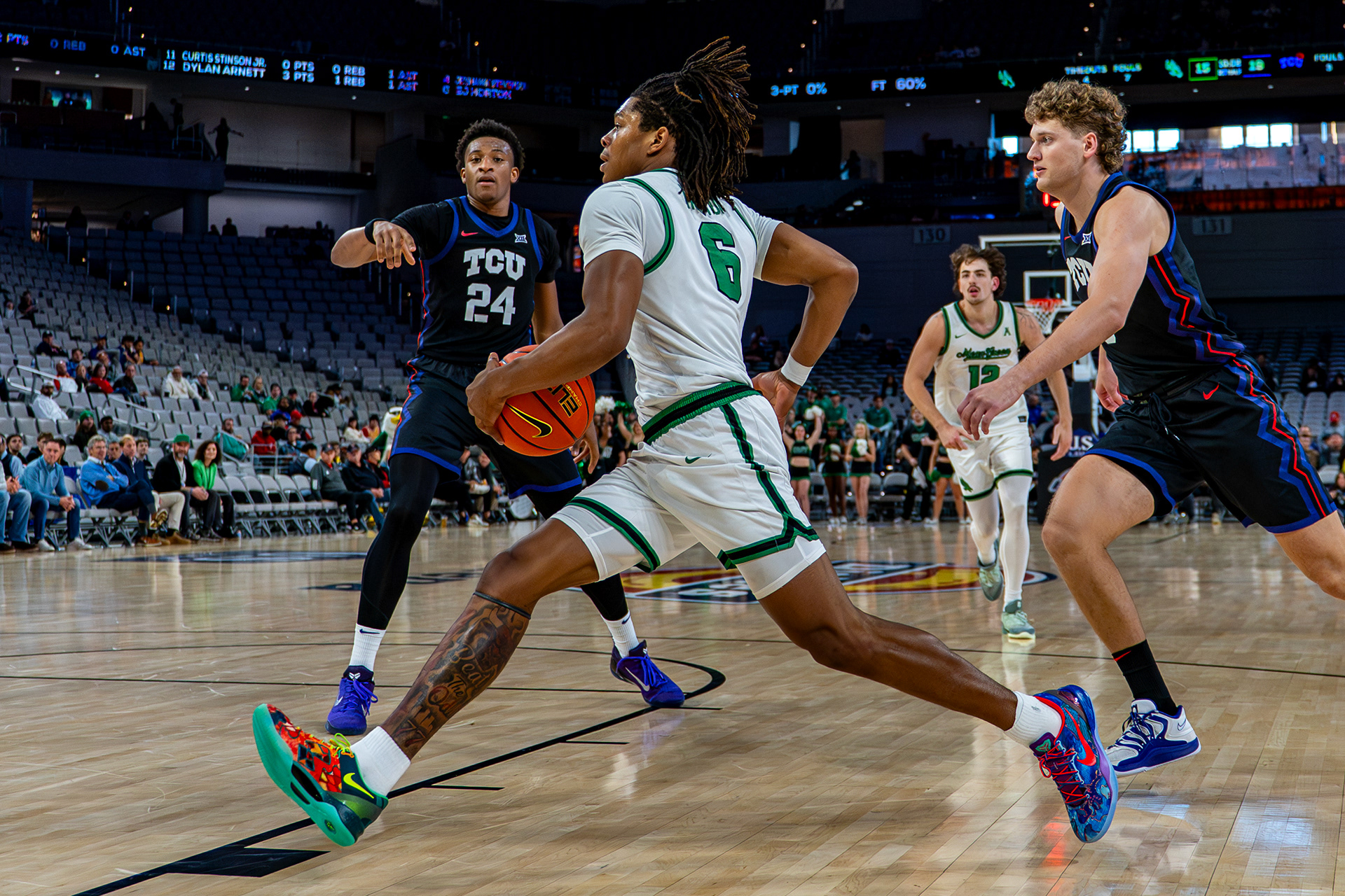 Senior tight end Tre Williams III evades a defender against Temple at DATCU Stadium in Denton, TX on Nov. 28, 2025.