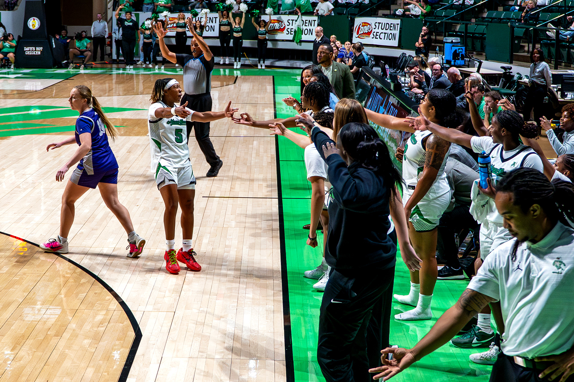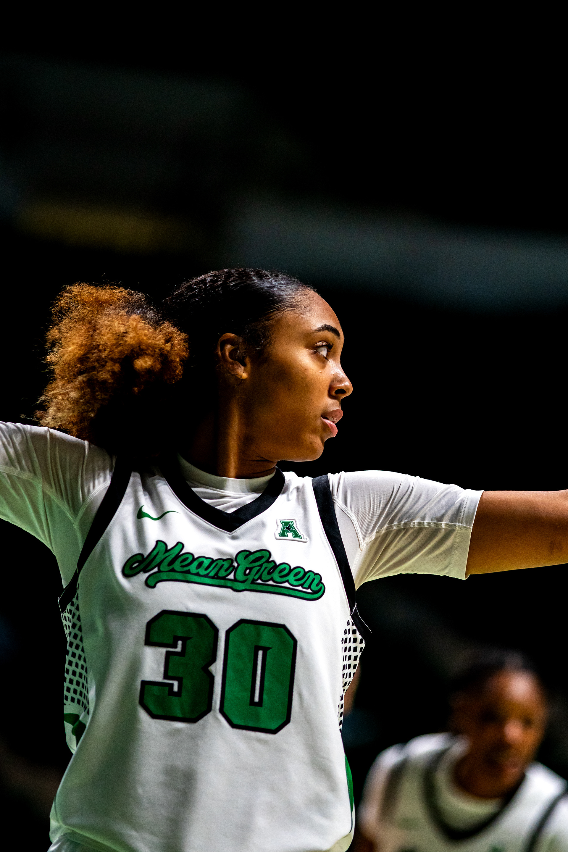Senior forward Aniyah Johnson checks out of the game against UAB at The Super Pit.